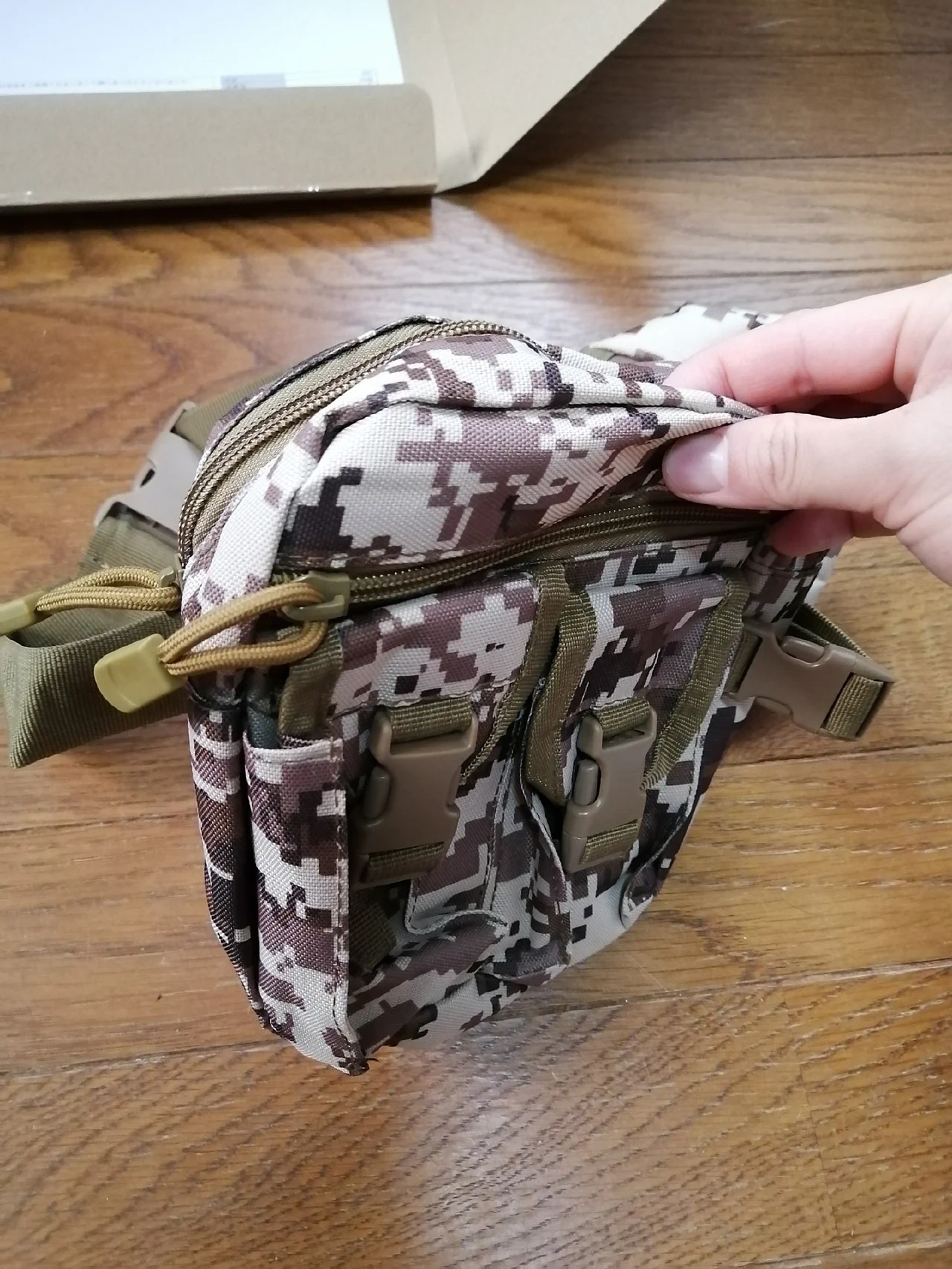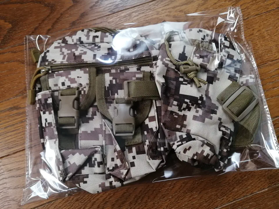 一般的な――という表現が正しいかわかりませんが、普通のウエストポーチと違って飲み物ホルダーがある分横幅が狭くなるのはまあ仕方ないと割り切っていました。いたのですが画像で抱いたイメージよりも厚みの面でも中々にコンパクトそうなのでさてここに必要なアイテムを放り込むとなると難儀だぞと。この時点でもうメジャーくんはベルト部分に引っかけることに決定1
