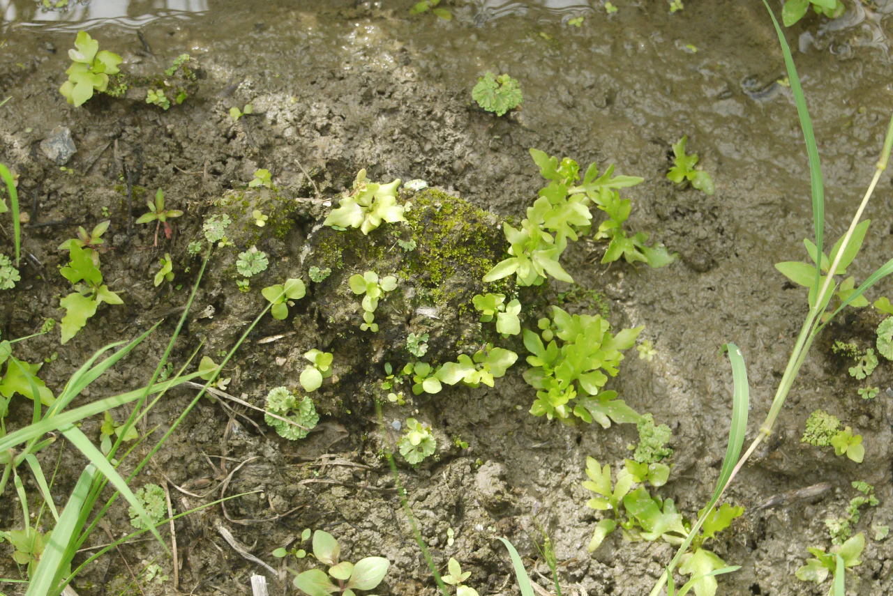 で、少し気になったのはリシアですね。もう一か所のヒメミズワラビを見た田んぼでもリシアには出会っています。そして田んぼ全体で見ると――そこまで虱潰しに見ているわけではないので見落としているだけでは?と聞かれると弱いですが――あんまりこの時期にリシアっていない気がします。つまりセットで出現しやすい何か条件があるのでは?とか考えていたり。ヒメミズワラビでもリシアでもいいのでまた新しいポイント見付けたいですね