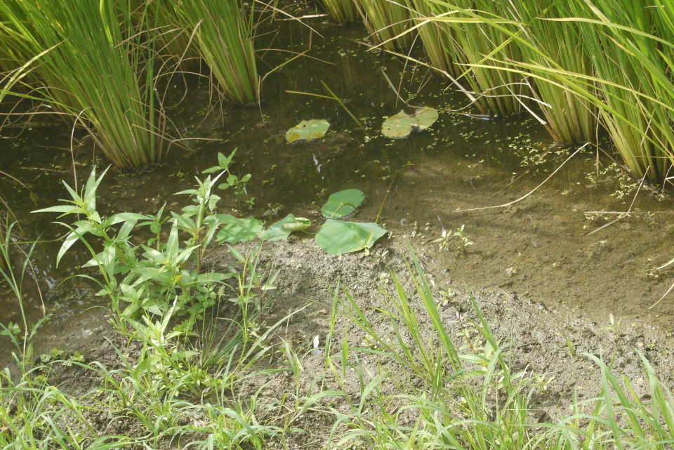 ハスの手前のは色々な植物。後から見るとなんか色の異なる2種類のルドウィジアいることない?それちゃんと見ておけよという突っ込みが出てて……全然見ていなかったのですがこの辺にいた草たちの記録です