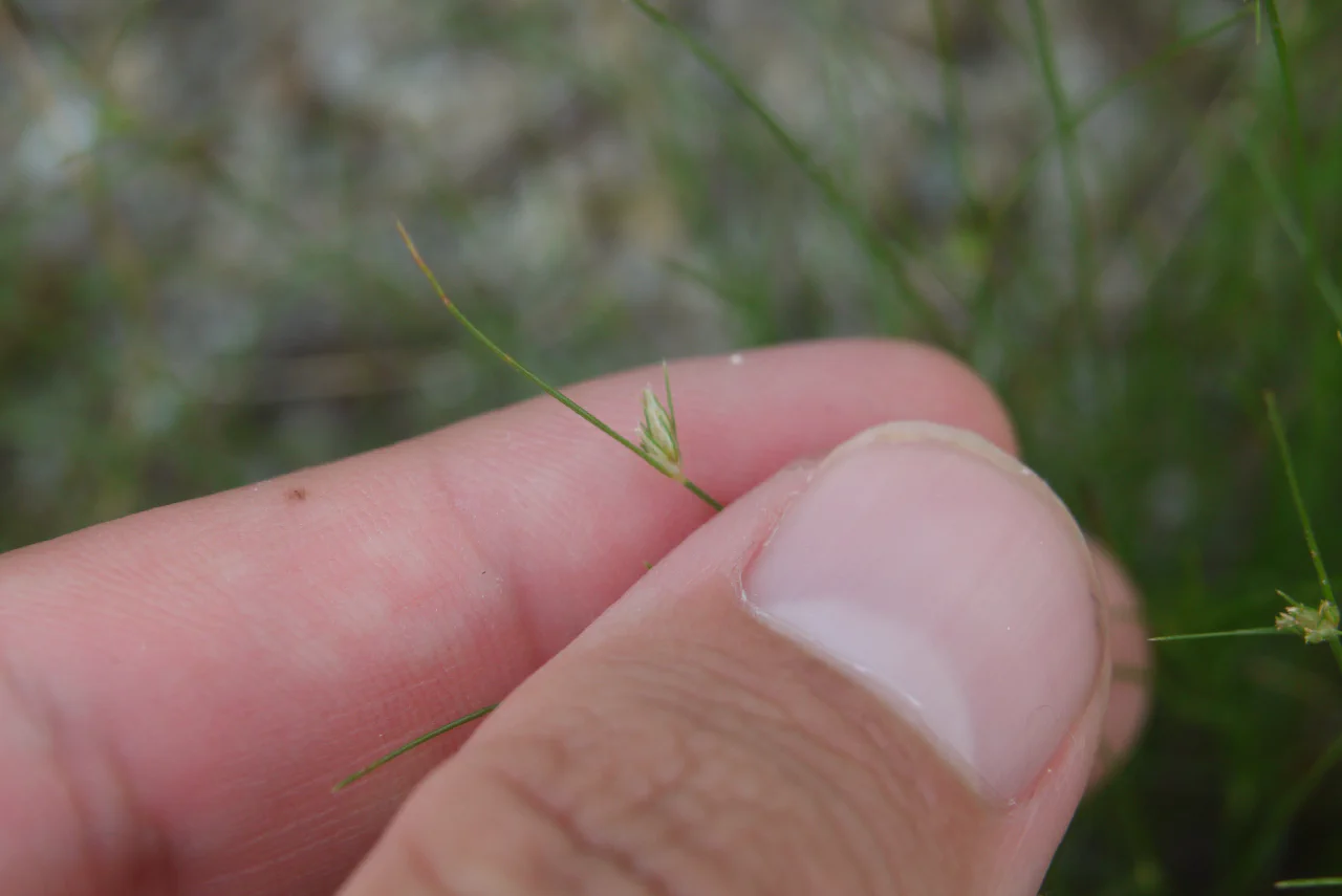 今日気付いたのはですね、これもハタガヤ……でいいのかな?最近出会う事が増えている細いカヤツリグサ科の植物です